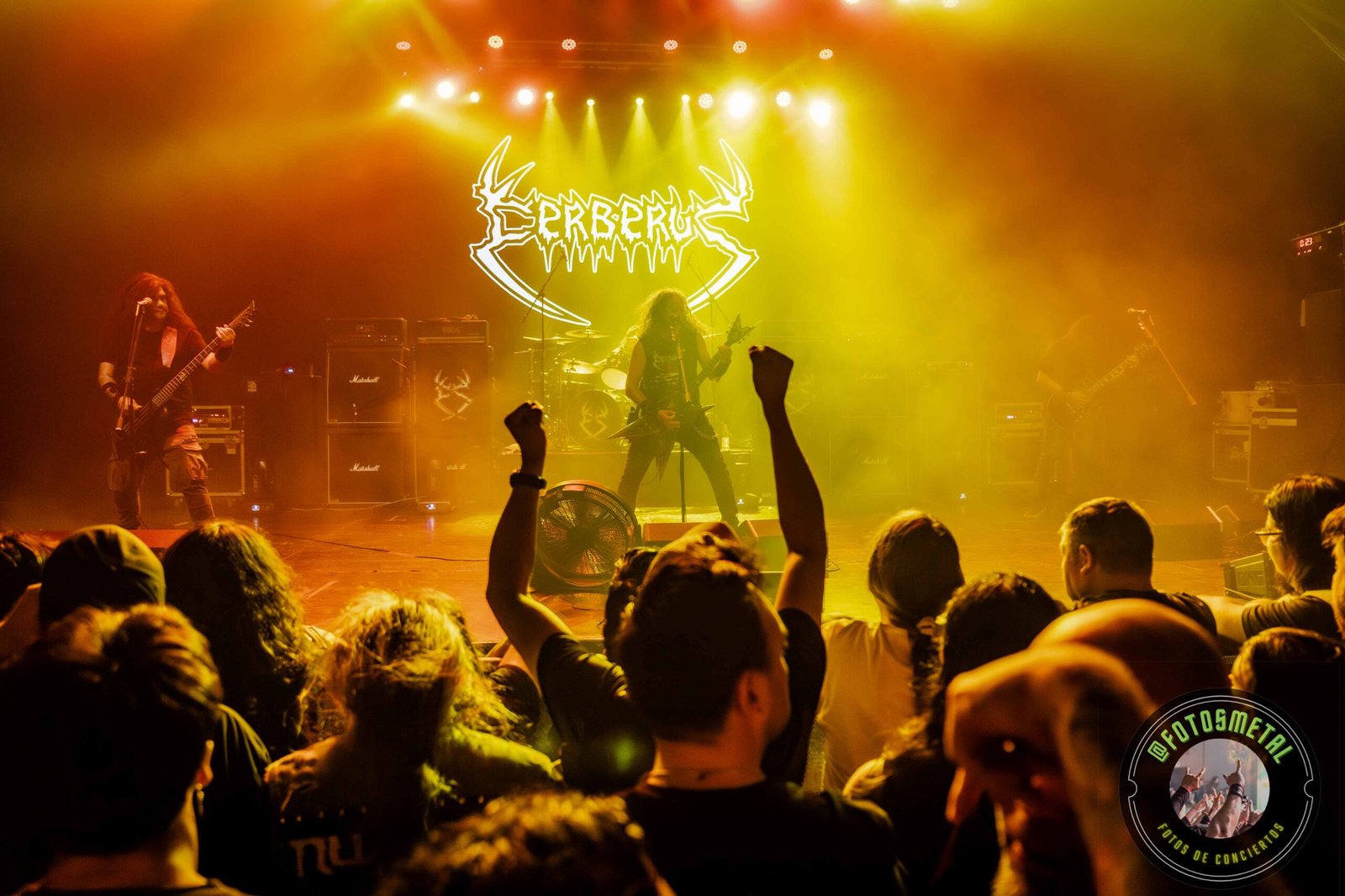 A las 20:05, Cerberus enfrentó un recinto lleno. Minutos antes, Juan Pablo Baquedano (guitarra y voz) había gestionado el acceso para registrar el show desde el escenario, y esa perspectiva privilegiada confirmó lo que se sentía abajo: una aplanadora. No hubo necesidad de arengas vacías; sus riffs hablaron solos. «Repulsive Life Forms» y «Ebola» funcionaron como maquinaria pesada. Desde arriba, la vista del mosh continuo validaba el estado de forma de una agrupación donde la ejecución técnica y la violencia escénica son indivisibles.