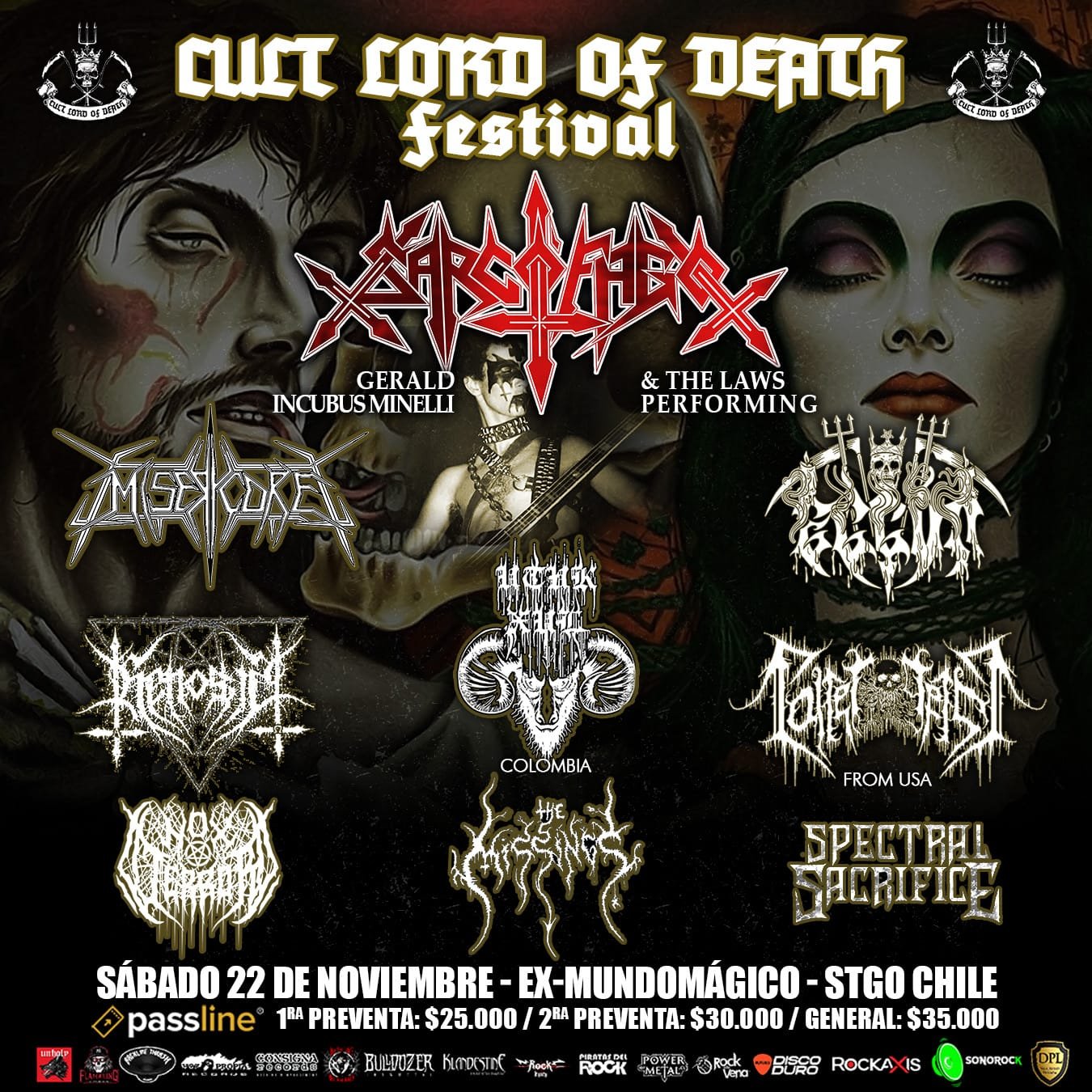 Tras haber realizado giras por España y Finlandia, Gerald “Incubus” Minelli y The Laws, se presentarán en nuestro territorio y encabezaran la primera edición de “Cult Lord Of Death Festival”, donde seremos testigos privilegiados de una jornada de metal extremo liderada por la oscura esencia viva de Sarcófago, que se hará presente bajo el mando del icónico músico Gerardo “Incubus” Minelli, interpretando los clásicos de la emblemática banda brasileña junto a The Laws.